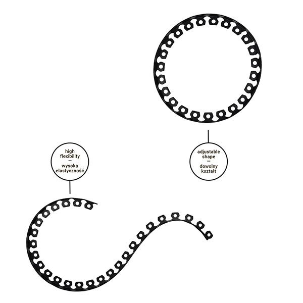 Бордюр садовий виготовлений з гнучкого пластику, що дозволяє легко формувати лінії вигину різного радіусу.