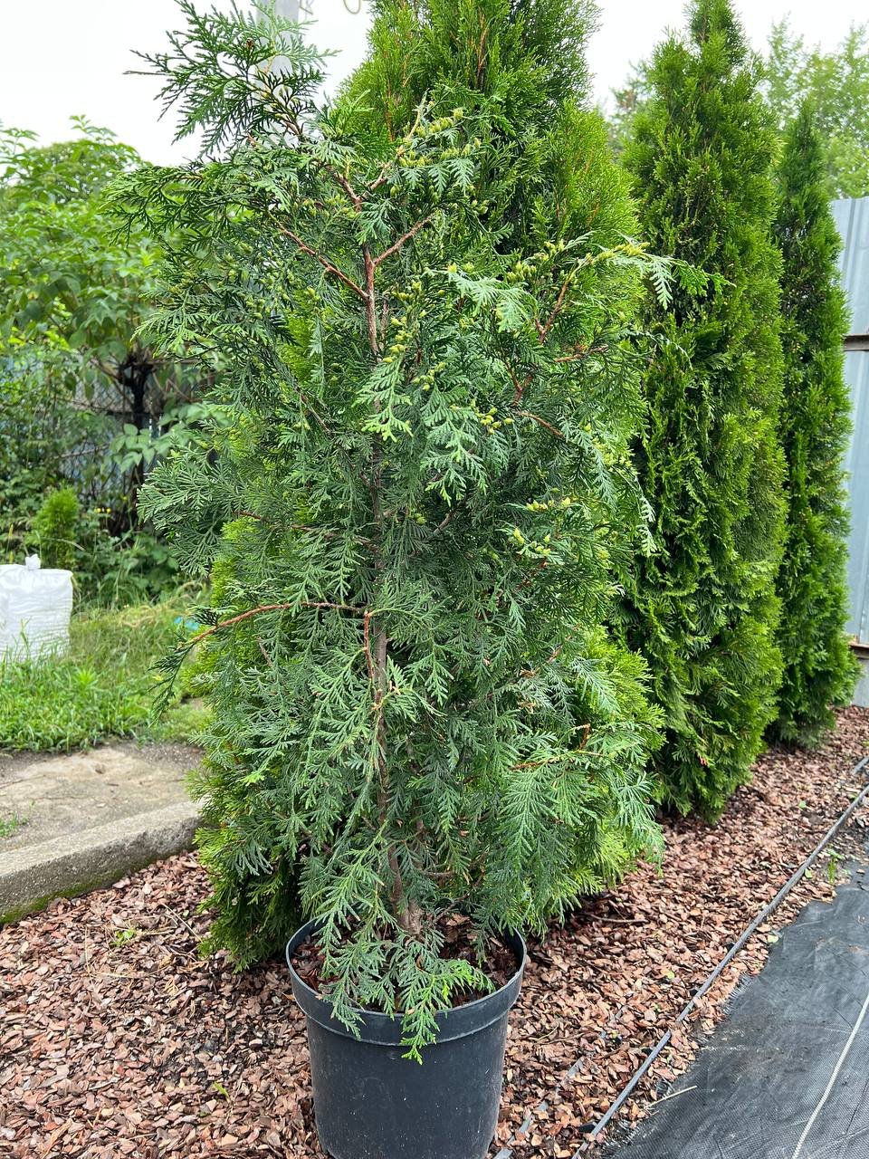 Швидкозростаюча туя для живоплоту з густою яскраво-зеленою кроною, що створює щільний захист від шуму та забруднень. Морозостійка, добре переносить стрижку, досягає 6-8 м у висоту, росте на сонячних ділянках у дренованих родючих ґрунтах.