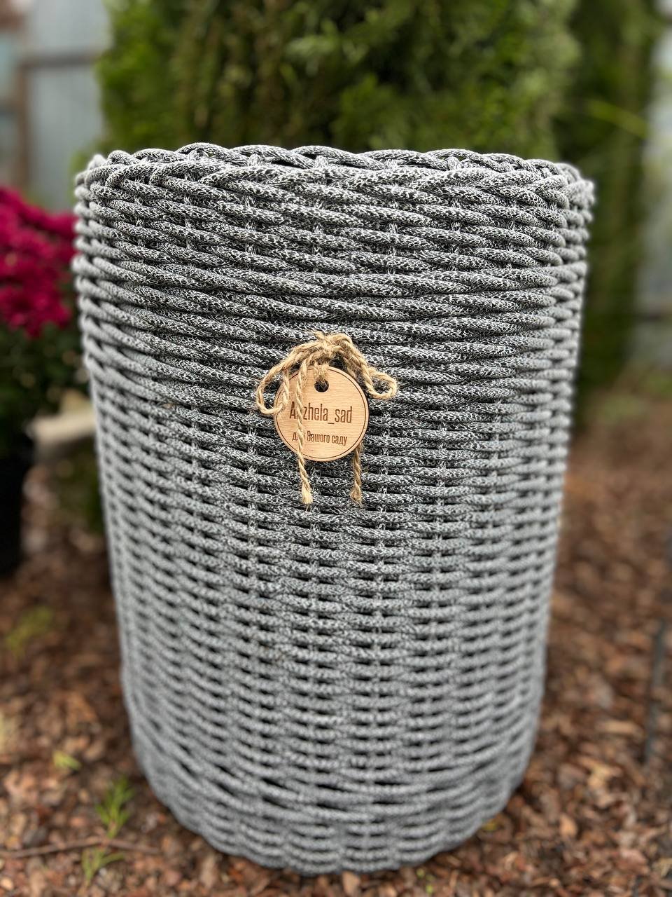 Кашпо з ротангу ручної роботи кольору Чорний мармур на 12 літрів.
