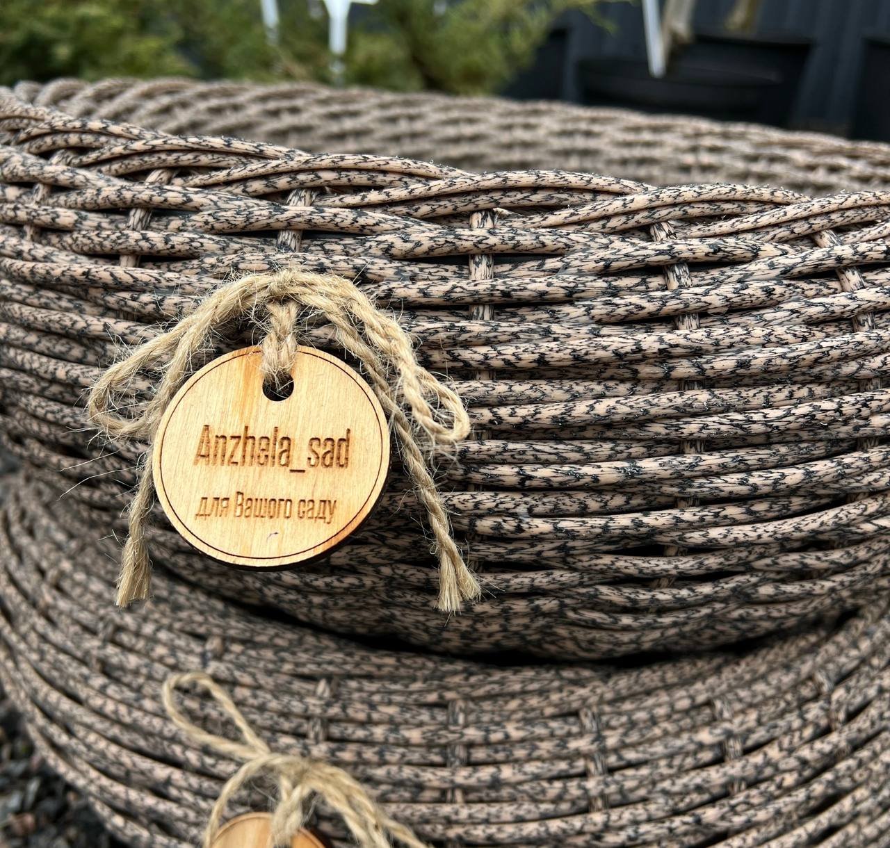 Натуральна фактура ротангу гармонійно поєднується з рослинами та додає саду природної естетики.