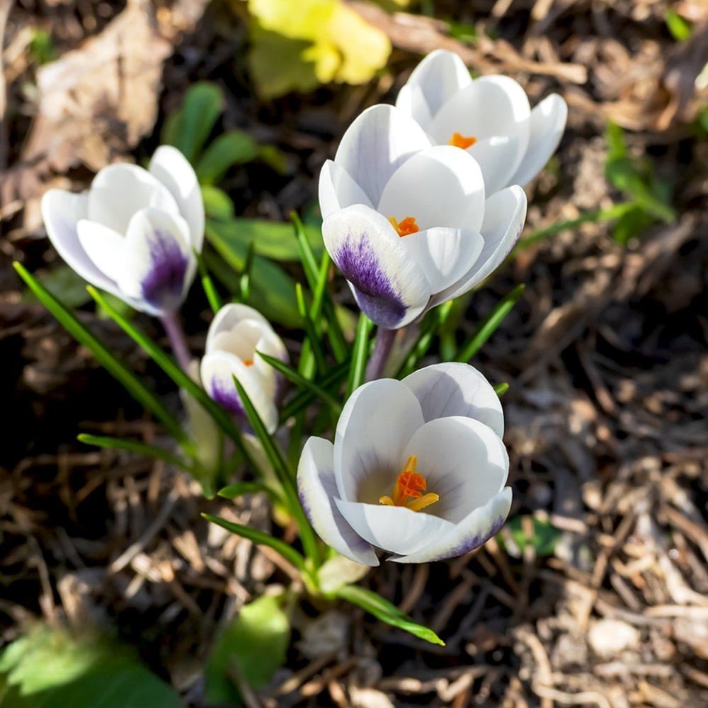 Крокус Panda — унікальний сорт весняного крокуса, який вражає своєю незвичайною кольоровою гамою та контрастністю. Його назва недаремно асоціюється з милим бамбуковим ведмедиком — пелюстки мають молочно-білий фон, що красиво відтіняється насиченим фіолетово-синім відтінком ззовні, які додають квітці глибини й виразності.