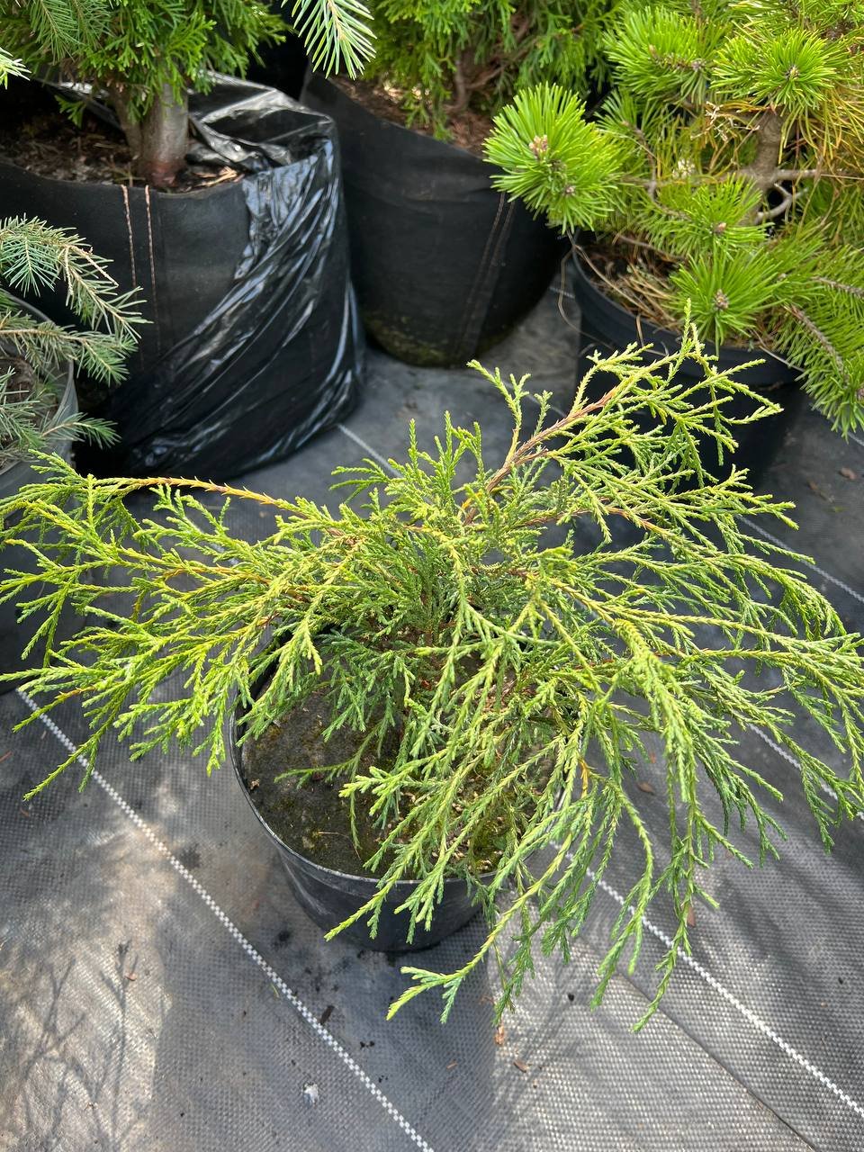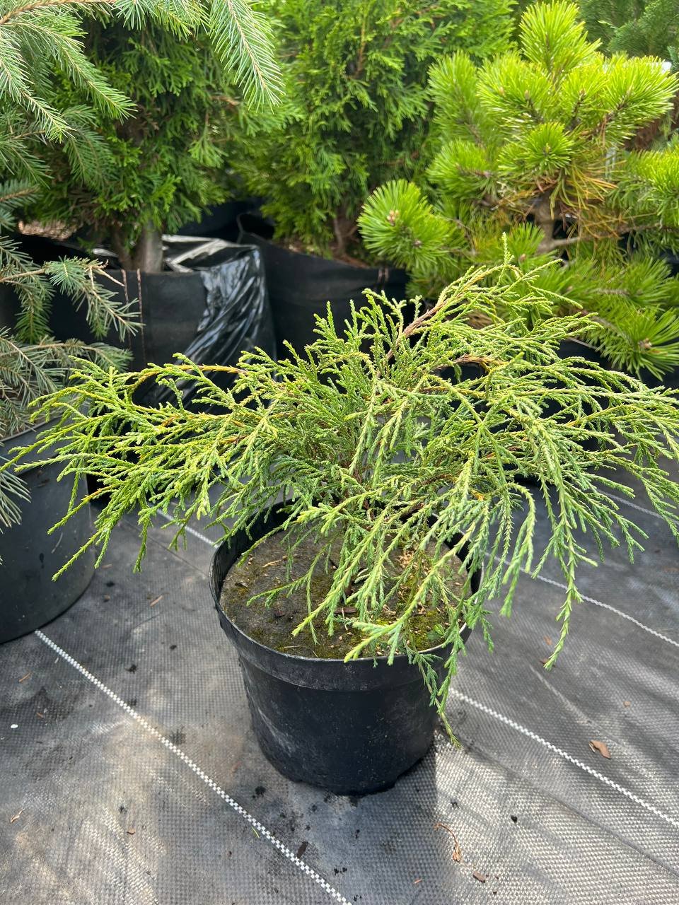 Хвойний чагарник, декоративний завдяки компактній формі та ниткоподібними пагонами. Форма крони – невисокий, карликовий, напівкулястий чагарник. Пагони тонкі, мотузкові, звисаючі, зеленого кольору, створюють ефект водоспаду. Довговічність чагарника – до 300 років