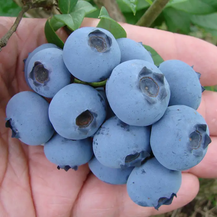 Великі (16-20 мм), світло-блакитні з восковим нальотом, щільні, з приємним солодким смаком і ароматом.