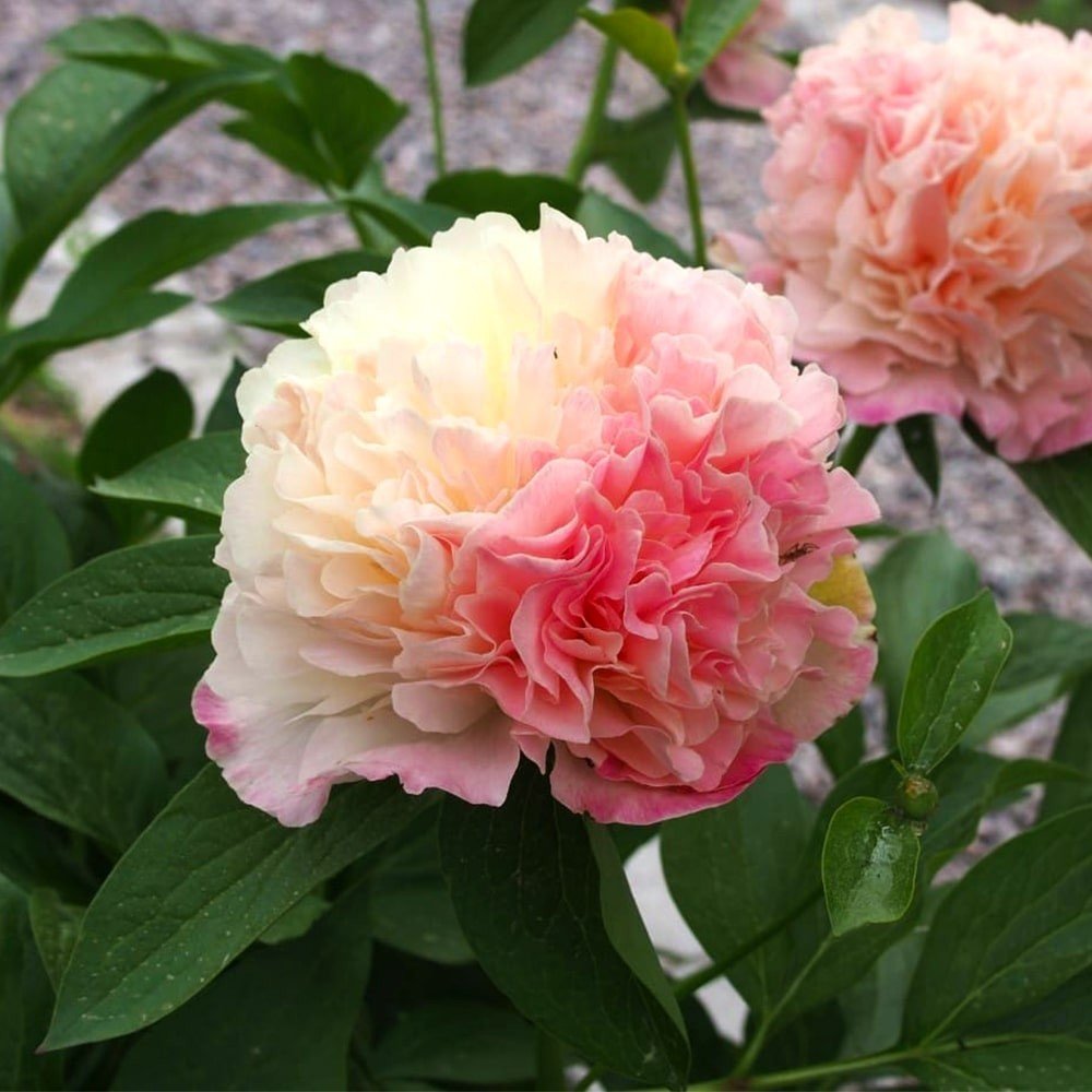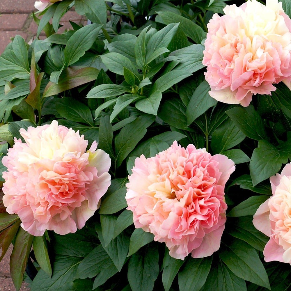 Посадку півоній можна проводити  з кінця вересня по листопад восени. Для цього викопують ями глибиною і шириною 50-60 см і на відстані 90-100 см один від одного. На дно ями засипають городню землю, компост, перегній і додають 2 склянки деревної золи. У знижених місцях ями викопують на 15-20см глибше, щоб зробити дренаж і потім засипати перегноєм. Наступний шар засипають звичайною землею з ділянки і висаджують посадковий матеріал. Кореневу систему рівномірно розподіляють по всьому об’єму, потім засипають землею і рясно поливають для ущільнення землі. Глибина посадки повинна бути 4-5см над бруньками відновлення.