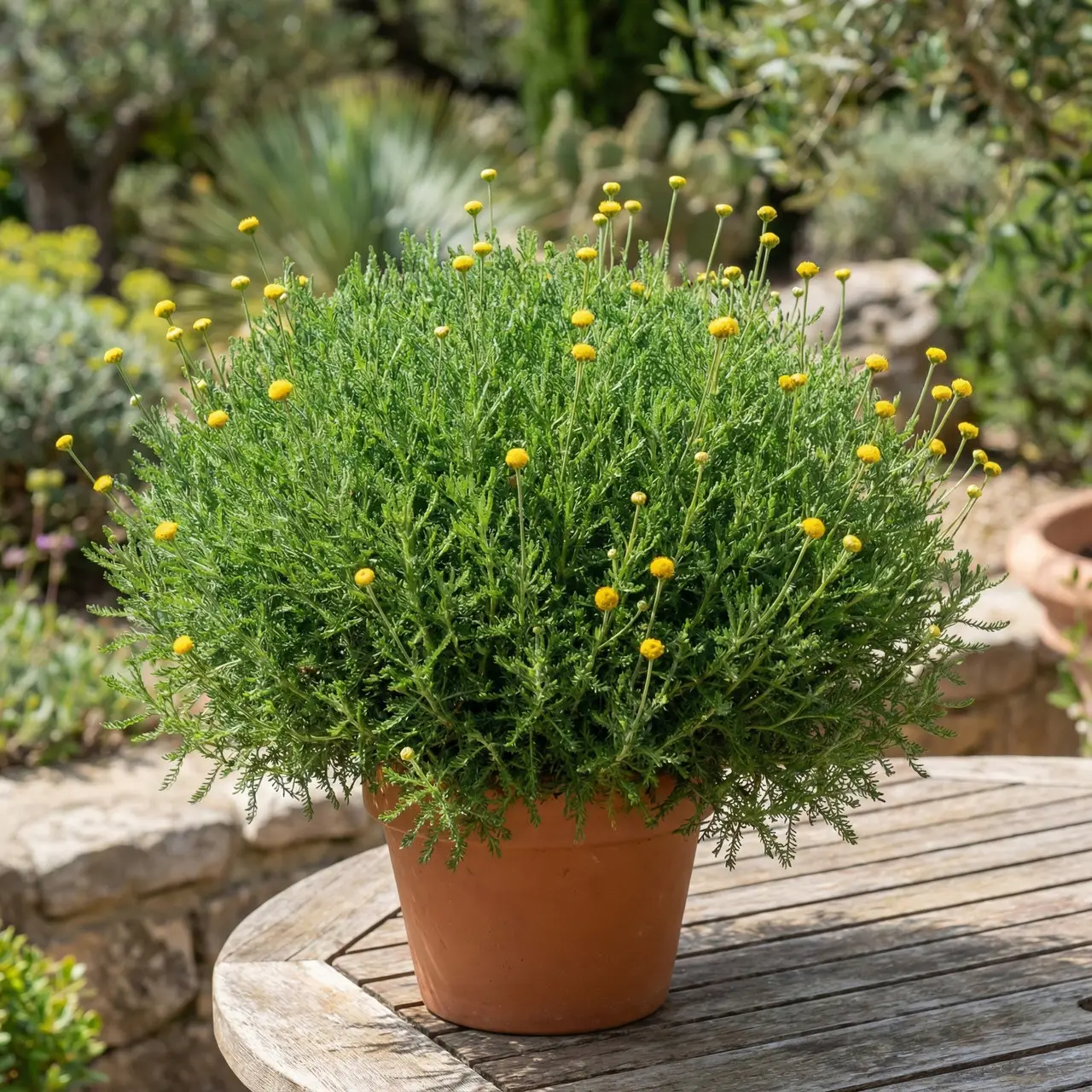 Сантоліна кипарисоподібна  – це вічнозелена рослина родом із Середземномор’я. Незвичайний вид заморської красуні робить її бажаною гостею на садових ділянках та як кімнатну рослину. Вона, без сумніву, стане центром уваги на будь-якій клумбі, альпійській гірці, альпінарії. Сантоліна не висока рослина, що досягають розміру до 60 см