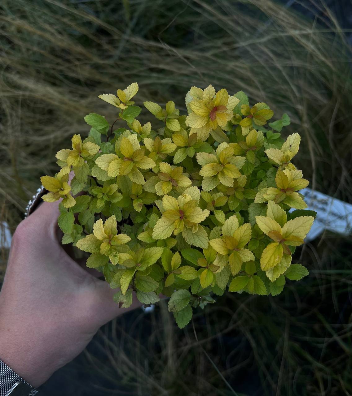 Карликові кущі виростають до 40см заввишки, діаметр досить широкої крони становить 60-80 см. Рослина покрита світло-зеленим потім золотаво-жовтим листям, яке до осені набувають червонуватих кольорів.