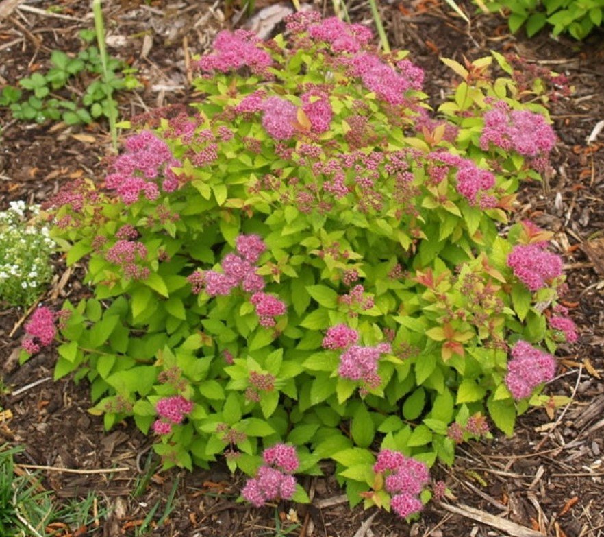 Спірея японська Сандроп – багаторічний компактний сорт спіреї, що повільно росте, з розкішними суцвіттями насиченого рожевого забарвлення. Декоративне яскраве забарвлення кольорів привертає увагу і не залишиться ефектним для будь-якої композиції.