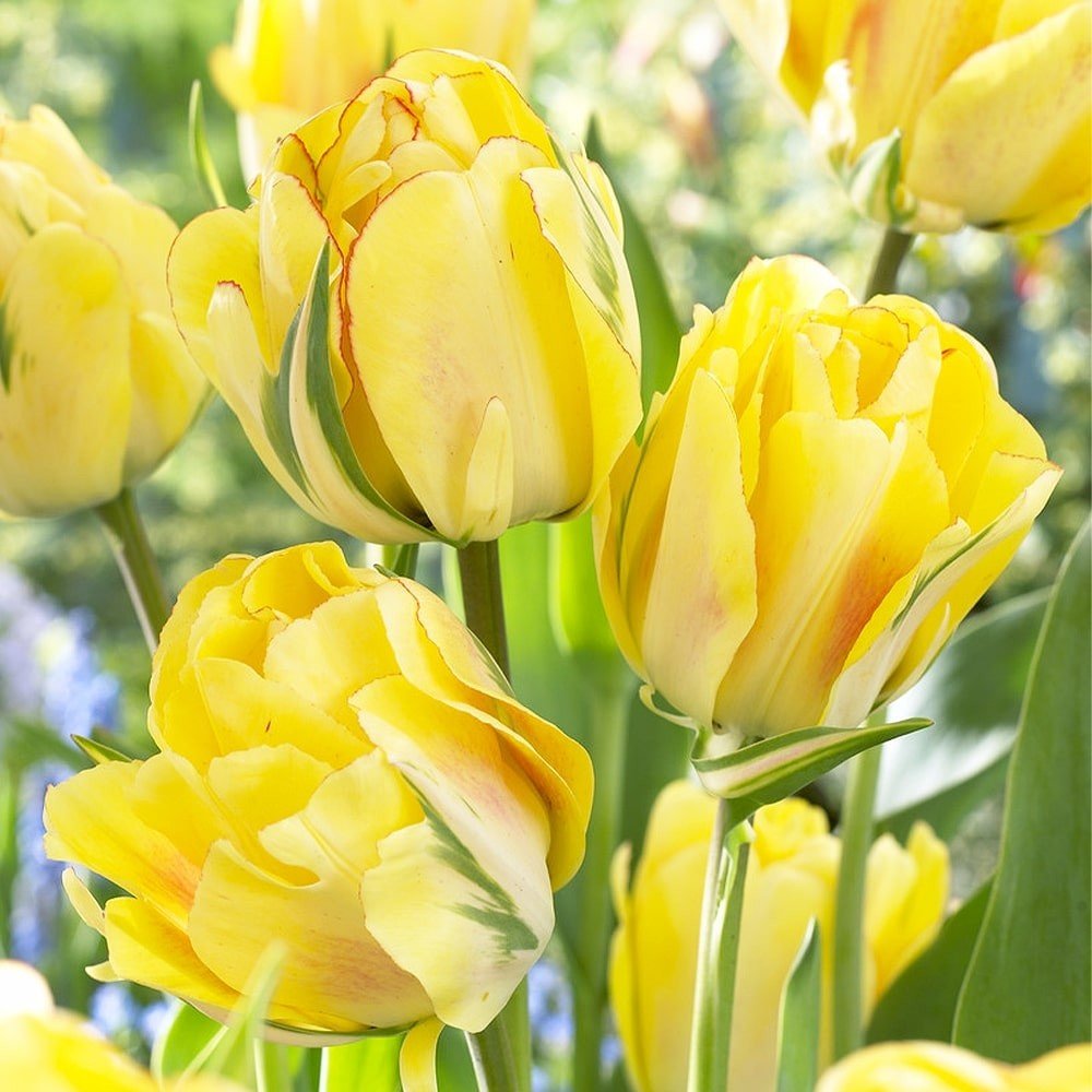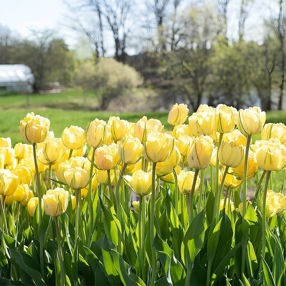 Тюльпани Akebono мають вельми цікаве забарвлення. Основна частина квітки жовтого кольору, відтінок дуже ніжний. По краю пелюсток простягаються рівні червоні лінії. Таке тонке обрамлення надає квітці витонченість і унікальність. Уздовж кожної пелюстки йдуть зелені смужки, зовні вони виглядають, ніби продовження стебла. Квіти мають багато пелюсток, тому нагадують піони.