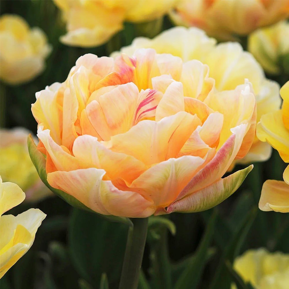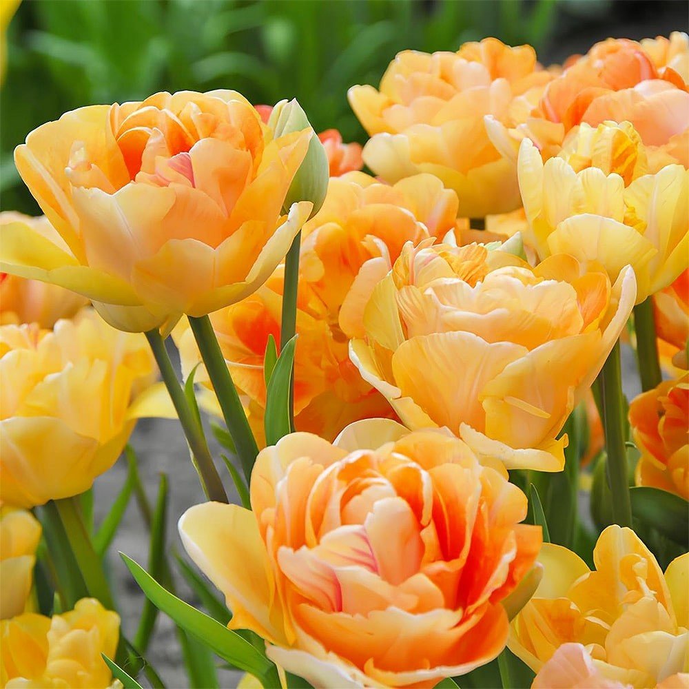 Тюльпан Charming Lady – це квітка, яка втілює в собі всі барви західного сонця. Його багатопелюсткове цвітіння нагадує розкішні півонії, створюючи унікальне поєднання кольорів на кожній квітці. Уявіть, як ці чудові тюльпани, розкриваючи свої пелюстки, перетворюють ваш сад на справжню галерею весняних шедеврів, коли сонце починає сідати, готуючи ваш сад до літнього сезону.
