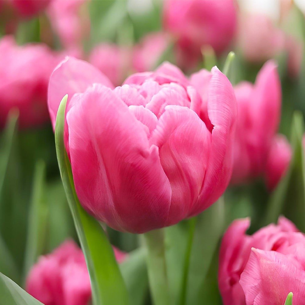 Махрові тюльпани характеризуються пишними квітами з безліччю щільних пелюсток. Їхні бутони нагадують півонії. У сорту Dior темно-рожеві напівсферичні квітки на міцній квітконіжці середньої висоти. Як і в інших махрових сортів, форма бутона напівсферична, а щільні пелюстки довго не опадають. Такий сорт особливо добрий у зрізанні. Тюльпан відрізняється вишуканим солодким ароматом.