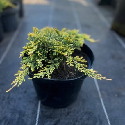 Вічнозелений кулястий хвойний чагарник з густою, кулястою кроною, пагони плоскі, досить прямі, густо розташовані і підняті вгору, в сторони розростаються рівномірно