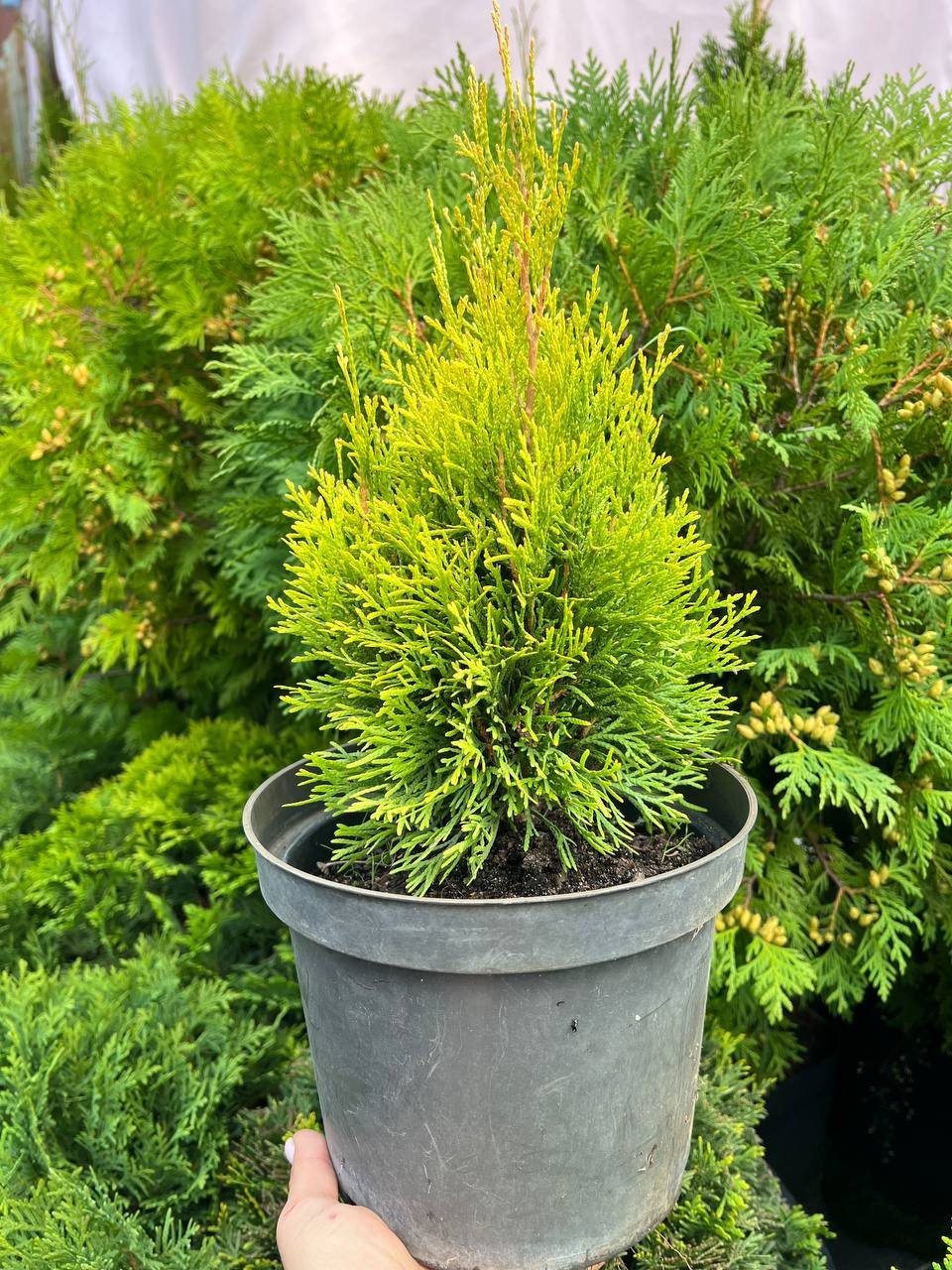 Маленька рослина з досить вузькою конічною формою та декоративною, вічнозеленою, золотисто-жовтою хвоєю. Це золота версія знаменитої туї Smaragd””
