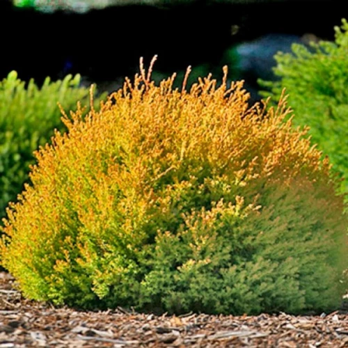 • карликовий, повільнозростаючий кущ конічної або яйцевидної форми, що досягає до 10 років висоти 1 м;